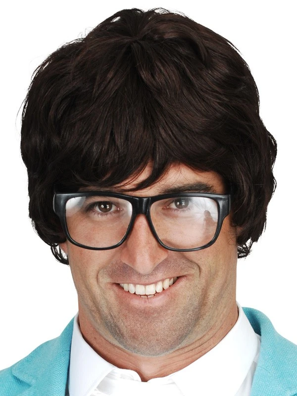 70’s Short Black Austin Shag Wig with Flicked Fringe. Yeh Baby!